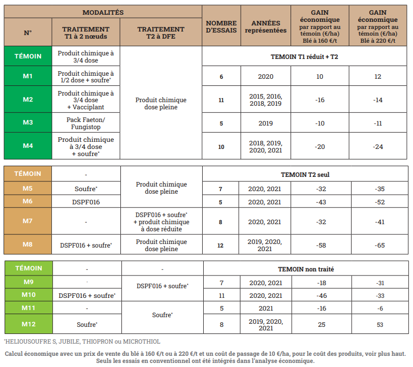 - Traitements chimiques associés avec des produits de biocontrôle en T1 ou T2