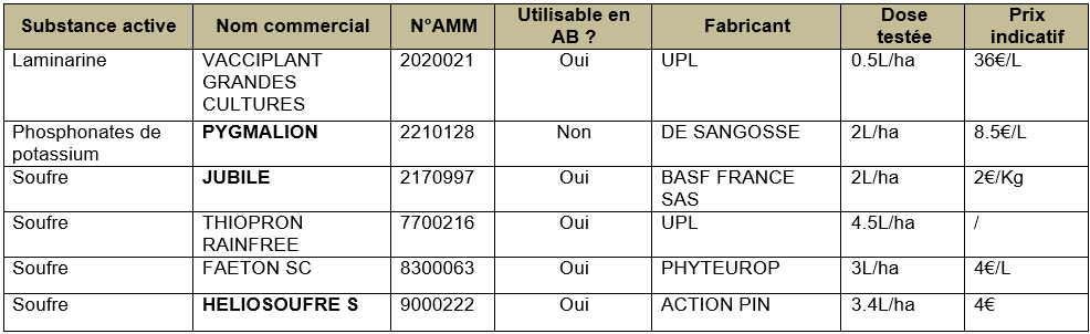 Voici l’ensemble des produits fongicides de biocontrôle testés :