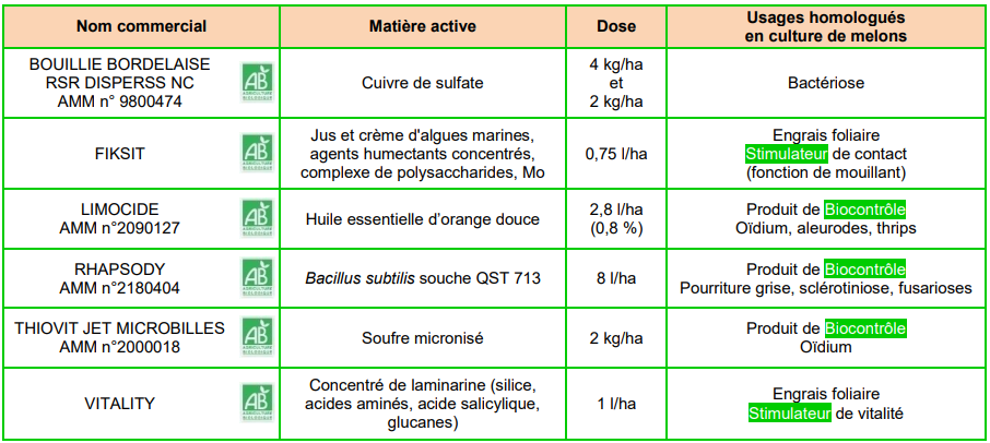 Cet essai vise à tester les solutions de biocontrôle disponibles contre la bactériose du melon. 6 produits ont été testés :
