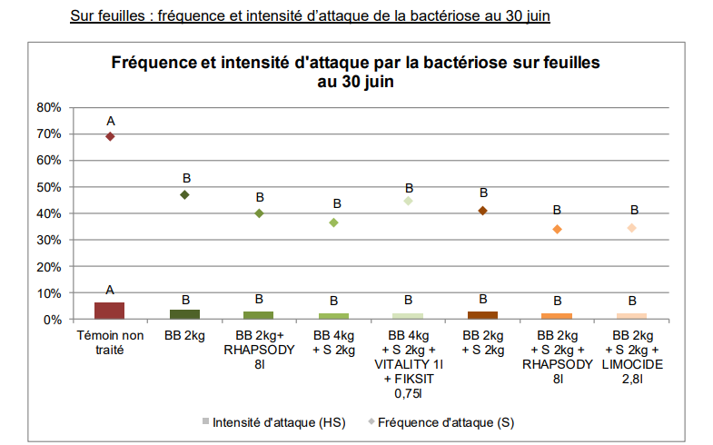 Concernant la fréquence et l’intensité d’attaque de la bactériose sur les feuilles
